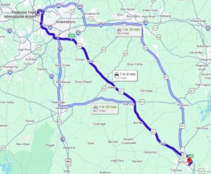 From Piedmont Triad International Airport(GSO), Greensboro (~1 hr 10 Minutes)